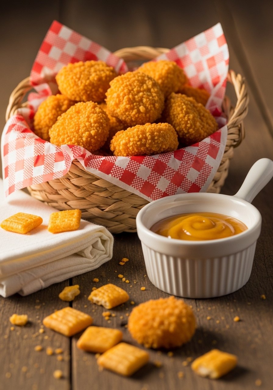 Crunchy, cheesy, and utterly addictive—these nuggets use crushed Cheez-Its for a super savory crust that kids and grown-ups devour. They bake (or air-fry) to a perfect crunch so you skip greasy frying. They’re ideal for game nights, potlucks, or a kid-friendly appetizer tray.