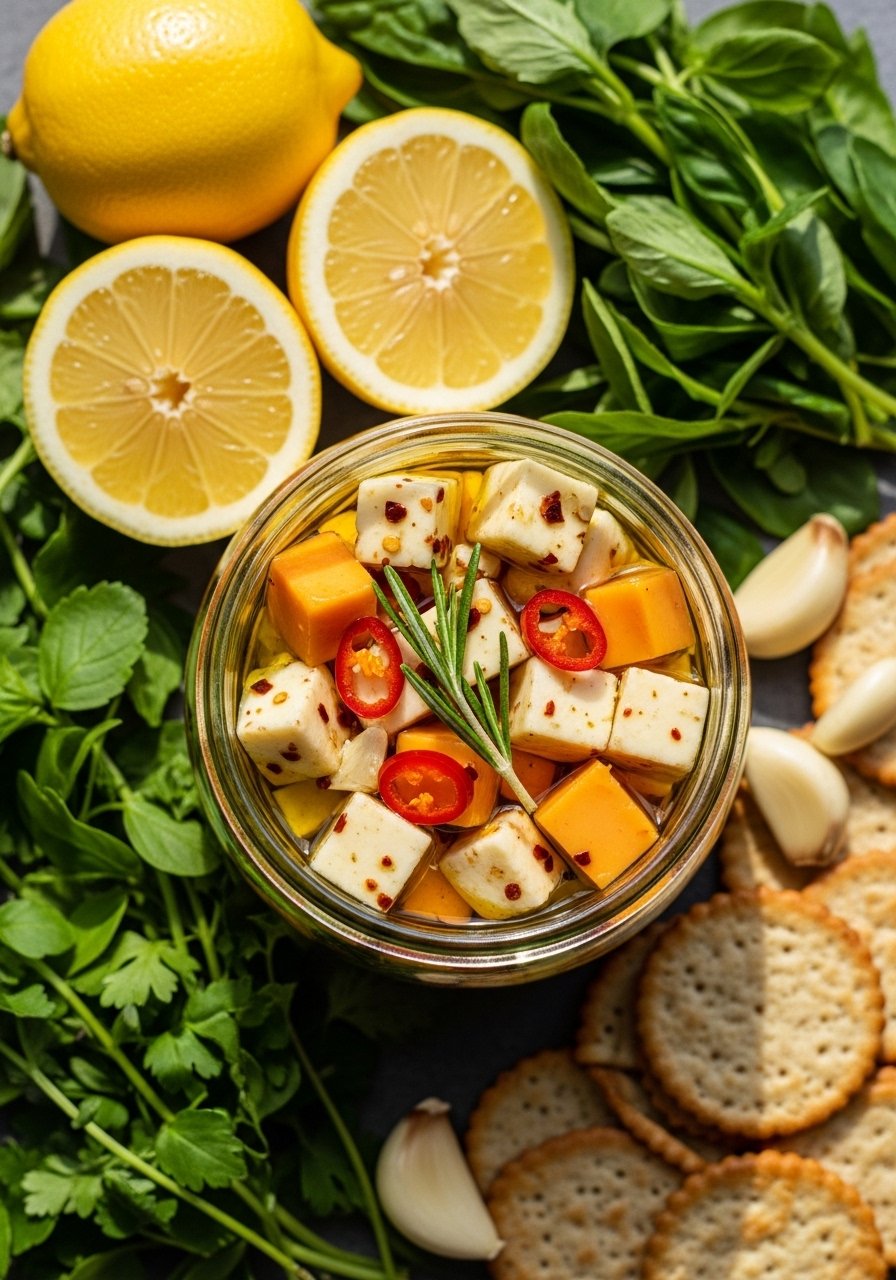 8. Marinated Cheese — No-Cook Appetizer Recipes