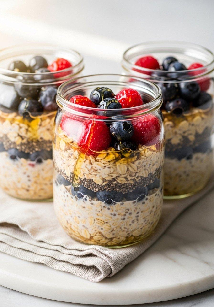 These overnight oats jars are creamy, customizable, and perfect for busy mornings. They’ve got a velvety texture from Greek yogurt and oats that soak overnight, plus mix-ins that keep each jar exciting. You’ll love the cool, slightly sweet bite and the chewy oats.