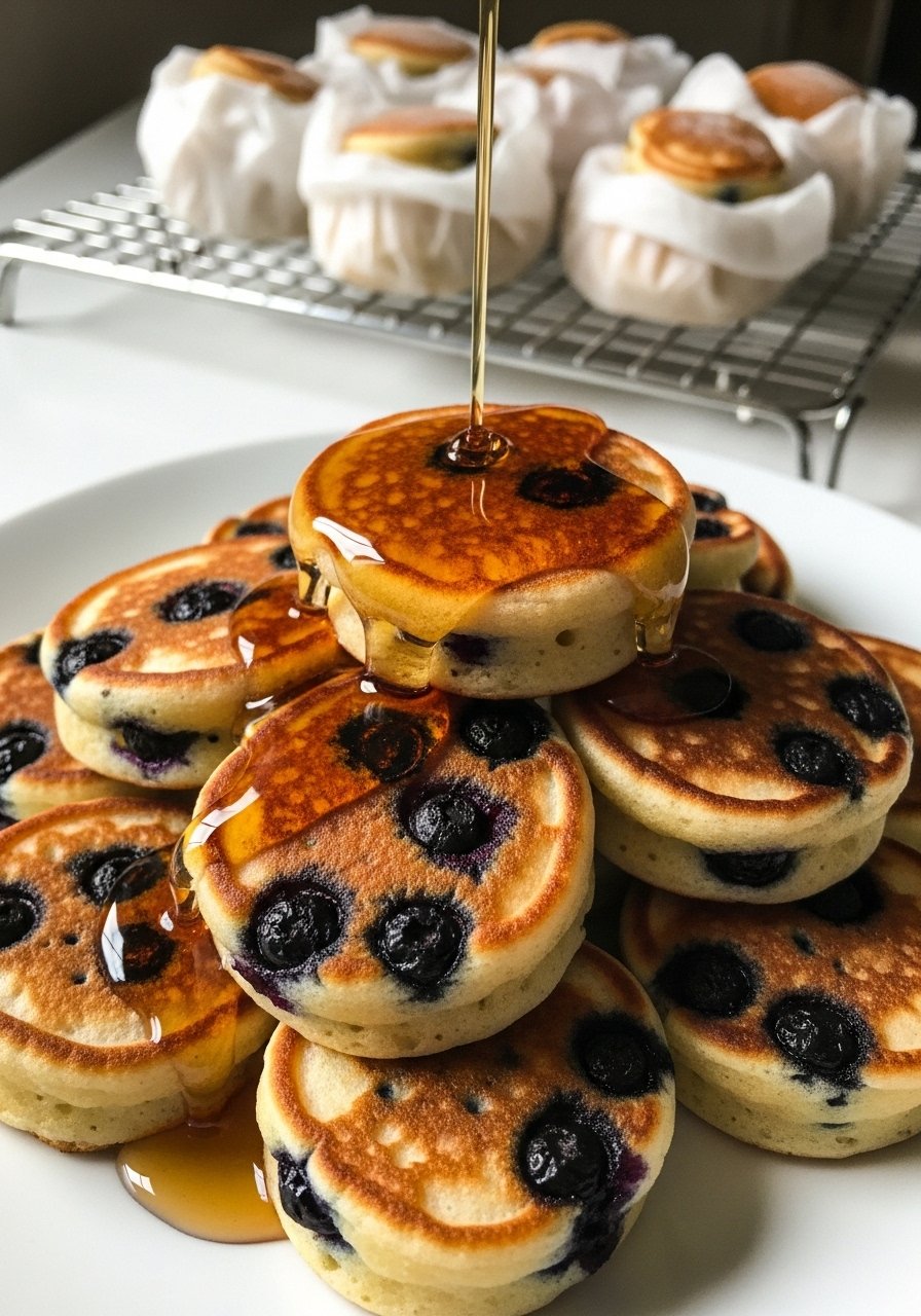 - Whisk eggs, milk, maple syrup, melted butter, and vanilla. Stir into dry ingredients.