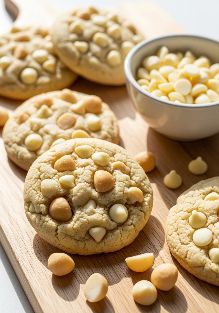 These cookies are buttery and soft, with crunchy macadamia nuts and sweet pockets of white chocolate. The chew comes from the balance of brown and white sugars and careful bake times.