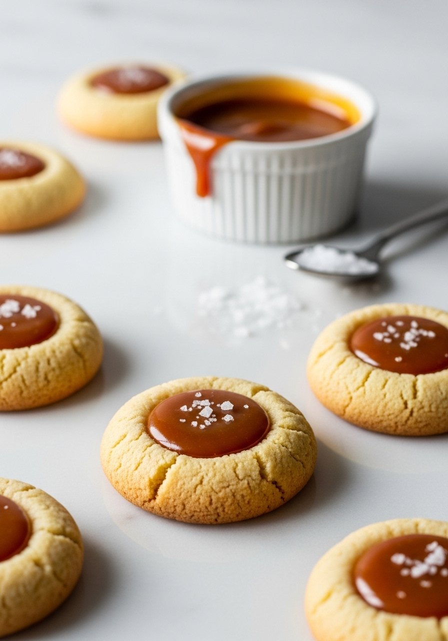 10. Salted Caramel Thumbprint Cookies (Soft & Chewy)