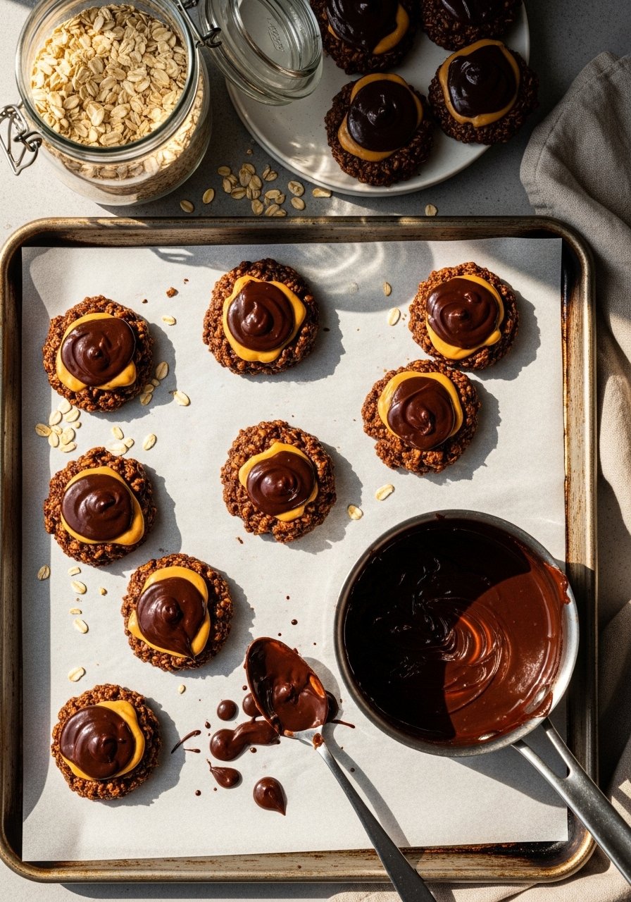 No oven? These no-bake cookies are chewy, chocolatey, and effortless. Hot chocolate and peanut butter bind oats into a glossy, soft cluster that sets at room temperature.