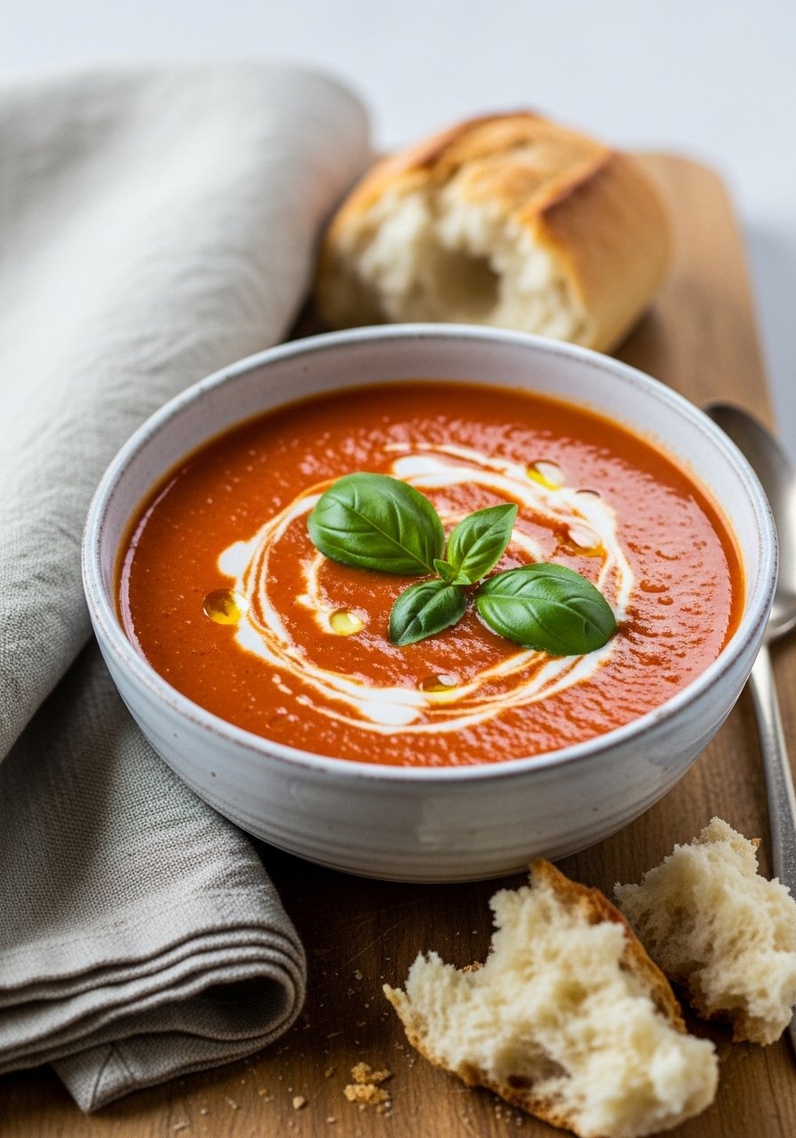 This tomato basil soup is silky, bright, and deeply comforting. Coconut milk adds rounded richness while roasted tomatoes give caramel notes. It’s perfect for rainy nights or when you want a bowl that feels like a hug—garlicky, slightly tangy, and lush on the tongue.
