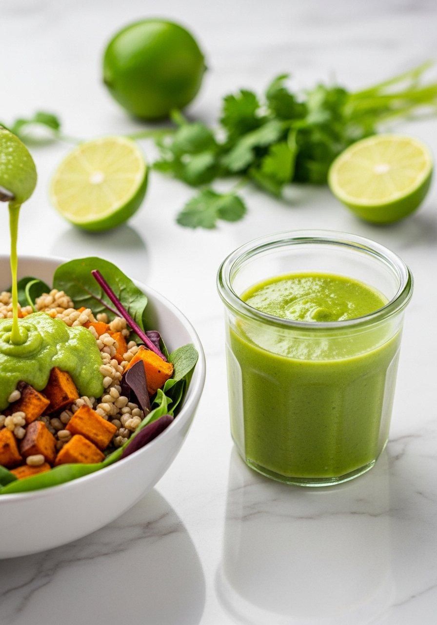 This dressing tastes rich like a creamy ranch but is bright and fresh. Avocado gives silkiness while lime and cilantro keep it lively. It’s perfect on salads, grain bowls, and as a dip for roasted veggies—satisfying and fast.