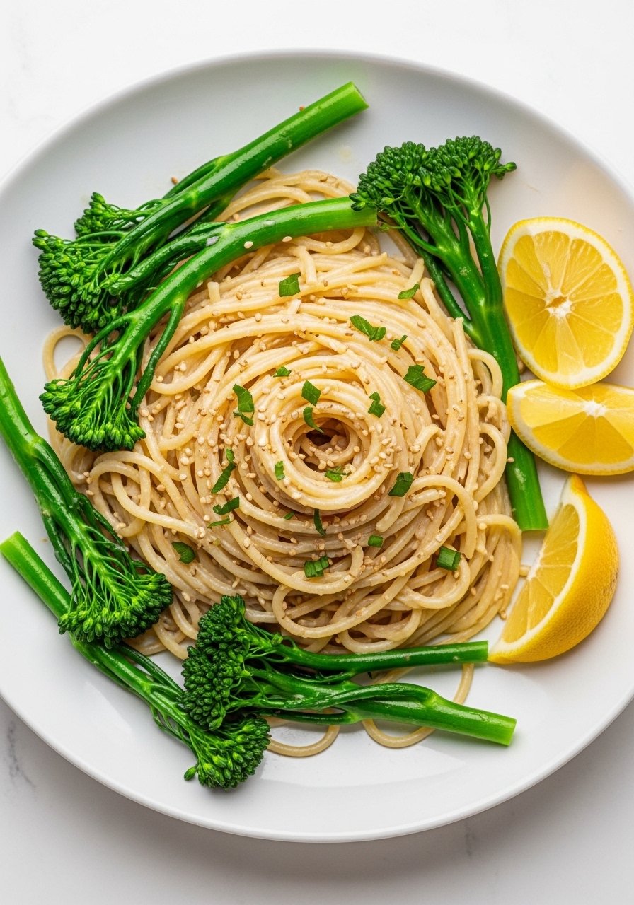 9. Lemon Tahini Cream Pasta with Broccolini