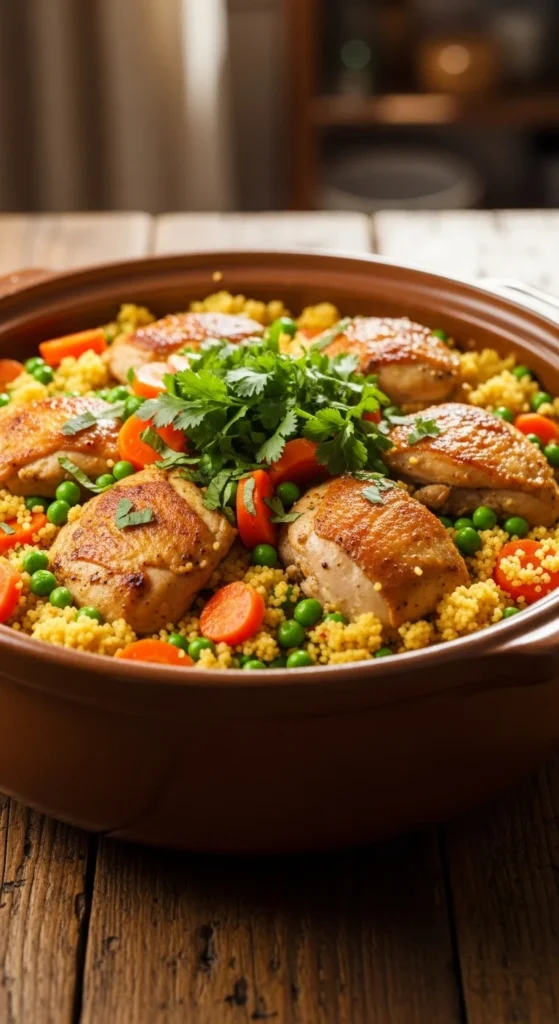 Chicken cooks right in the pot, so the couscous soaks up all the flavor.