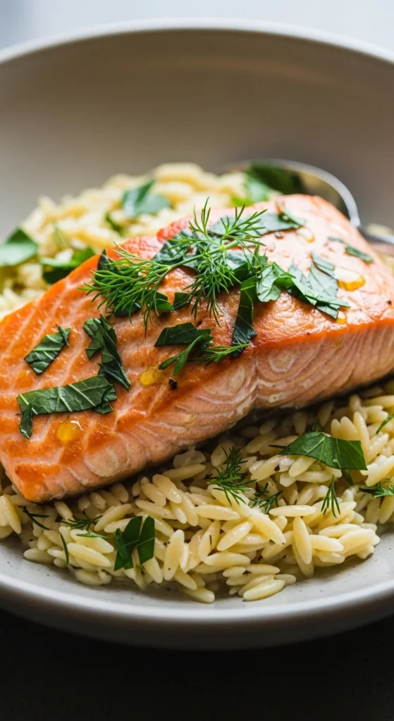 2. One-Pot Salmon “Risotto-Style” Orzo