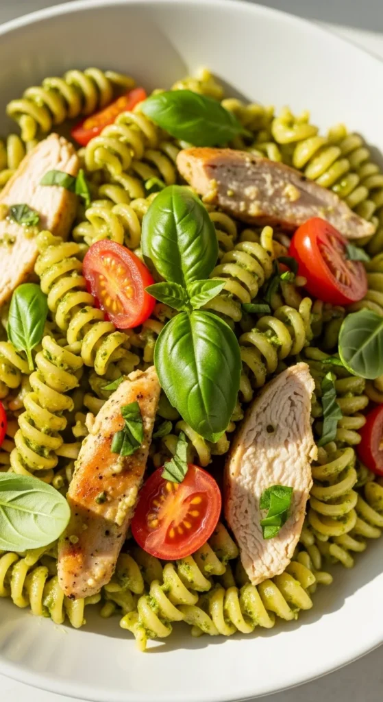 Pesto chicken pasta is the fastest way to make dinner feel fun.