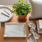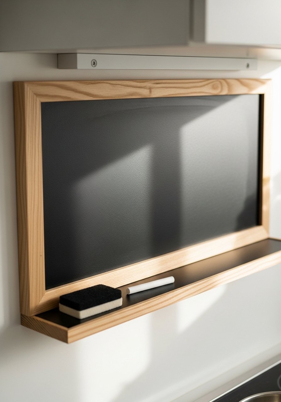 Cork tiles create a tactile, pin-friendly surface for rotating notes, photos, and inspiration. It’s functional and textured.