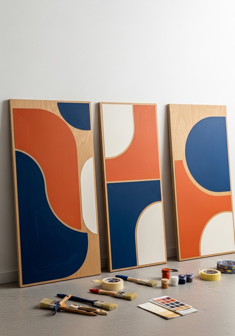 Geometric panels add modern shape and vivid color to a plain wall. Sharp lines and contrasting hues give a gallery-like feel without the cost of prints. This project suits lovers of minimal and modern styles.