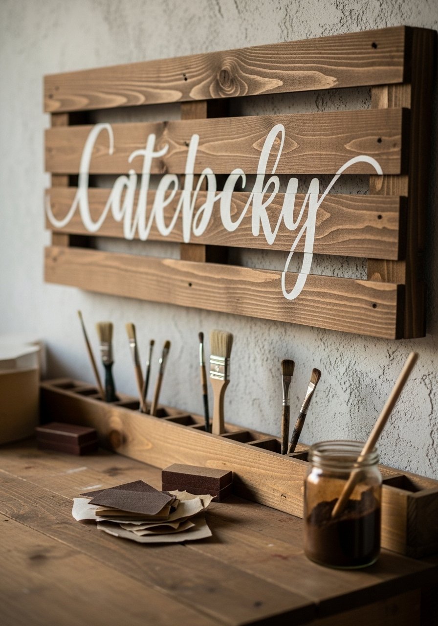 Pallet wood gives character and a weathered backdrop for typography or stenciled motifs. This approach is budget-friendly and produces a robust, tactile piece with a faint woody scent.