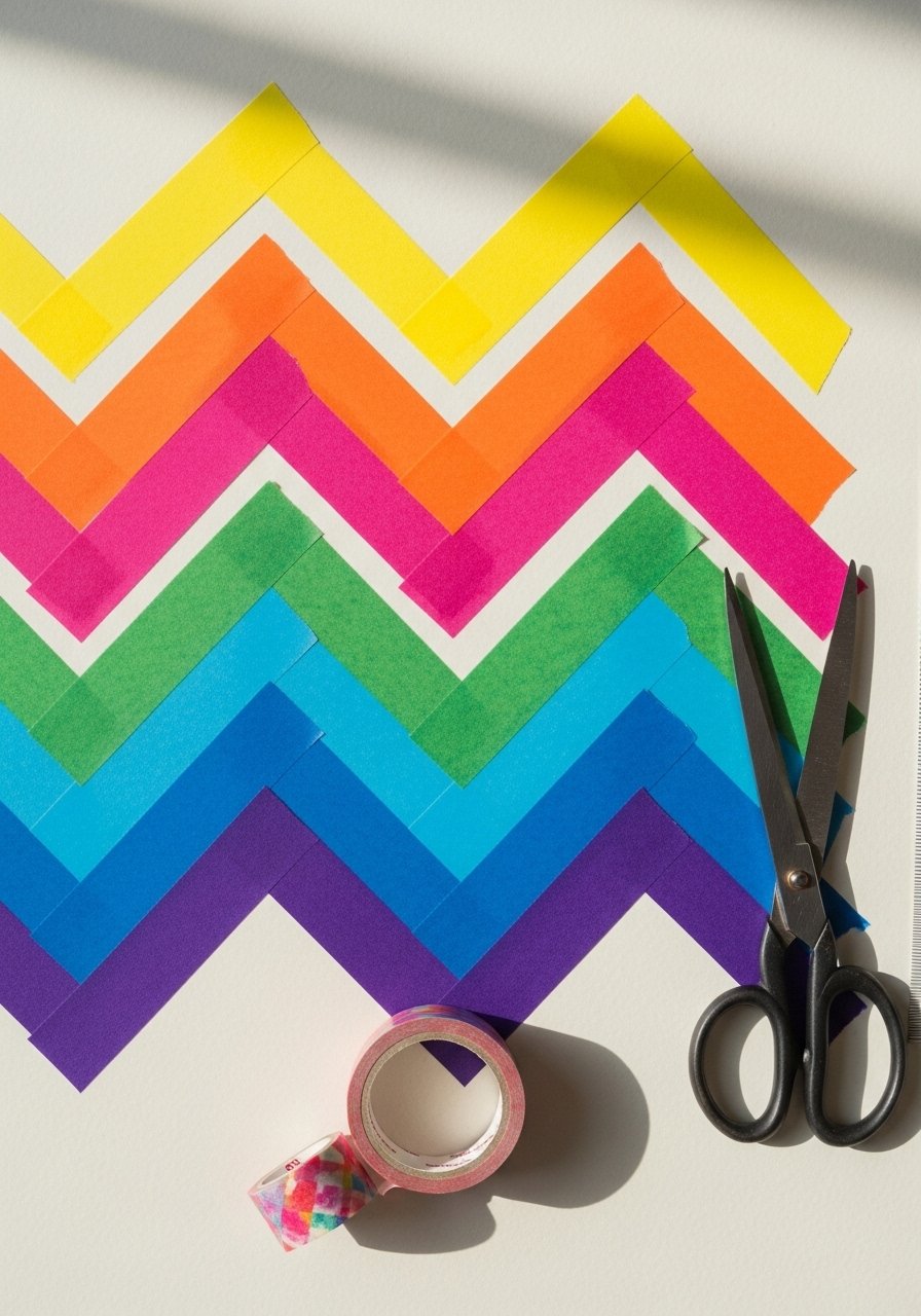 - Plan geometric shapes with a pencil and ruler; mask lines with painter’s tape.