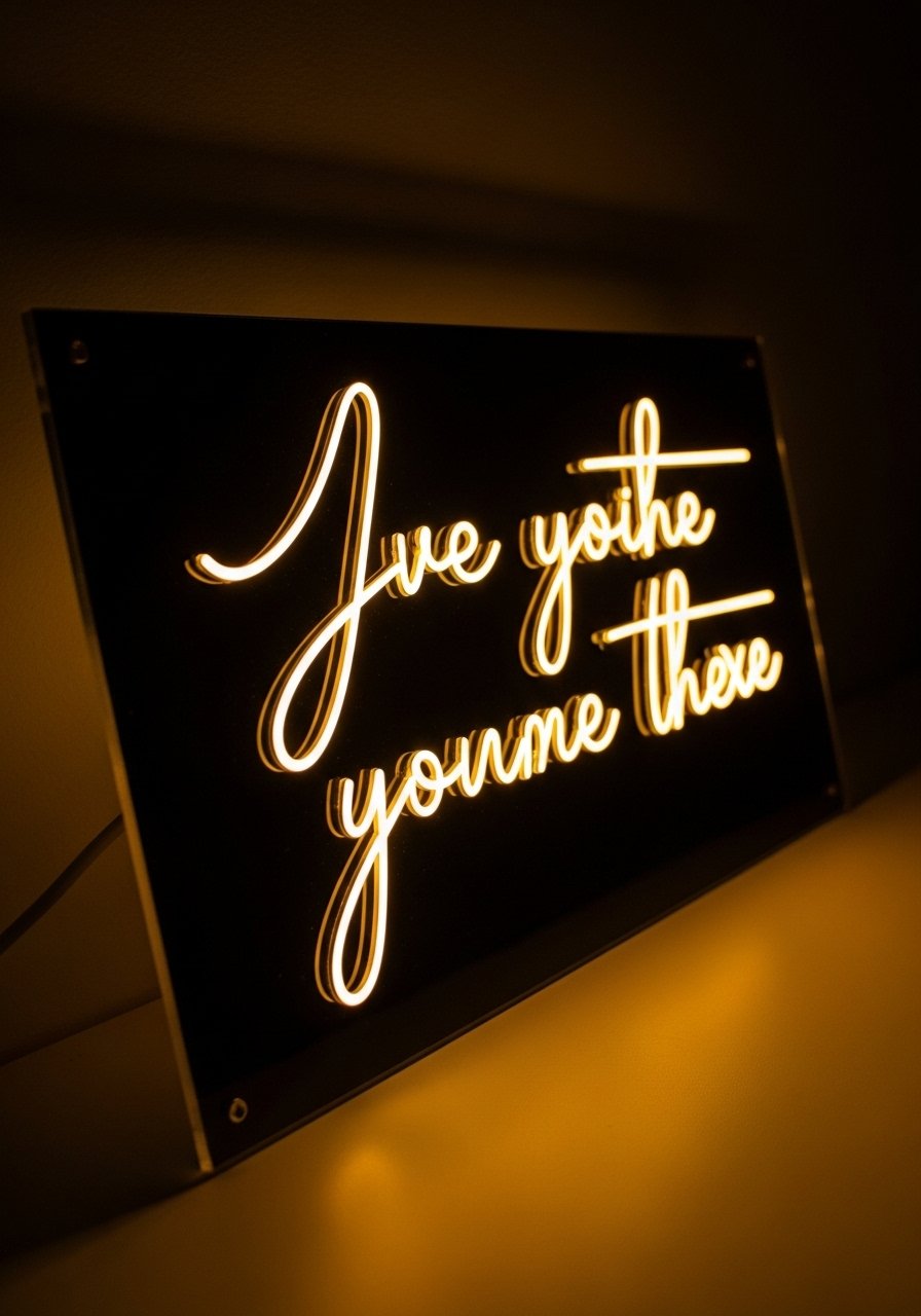 A faux neon LED strip sign gives that neon vibe without the cost or fragility. Use flexible LED neon rope lights to trace a short quote for a cozy glow.