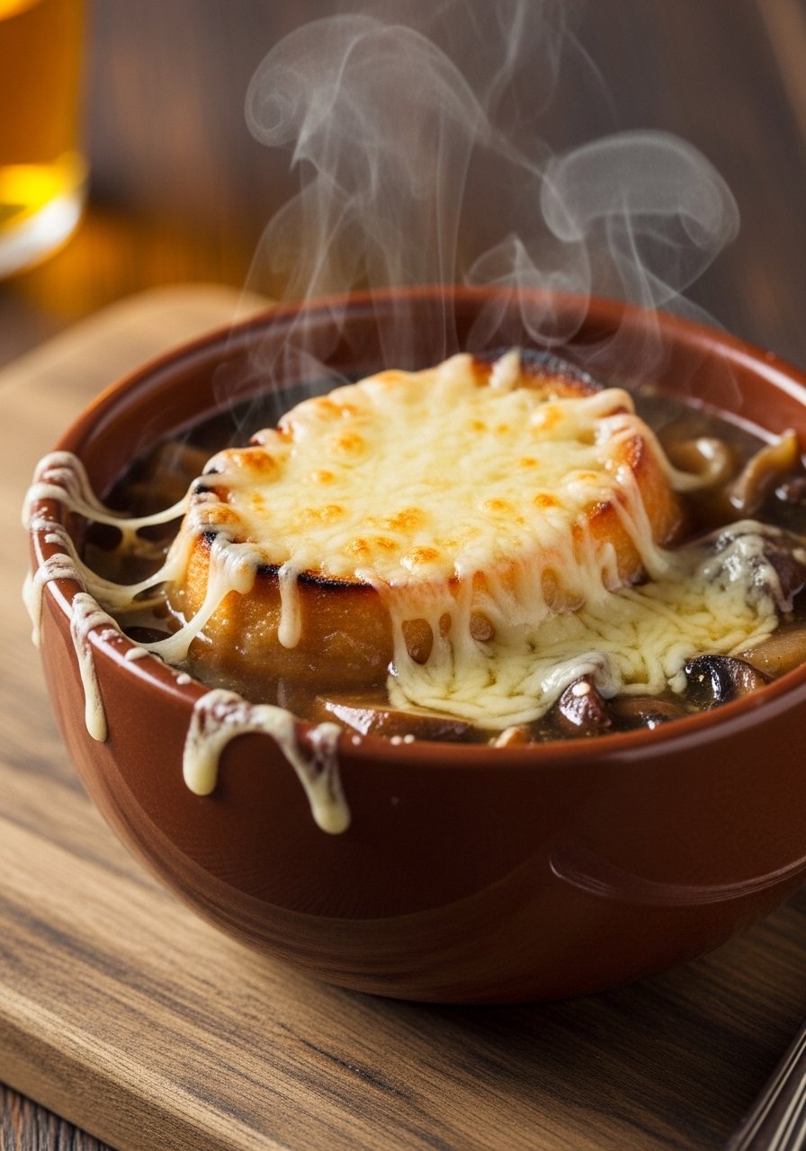 This soup upgrades the classic with earthy mushrooms and a generous gruyère crust. Caramelizing onions slowly brings deep sweetness, and the mushrooms add savory, meaty texture. It’s cozy in the truest sense — rich, aromatic, and finishing under the broiler gives you that crave-worthy cheese pull.
