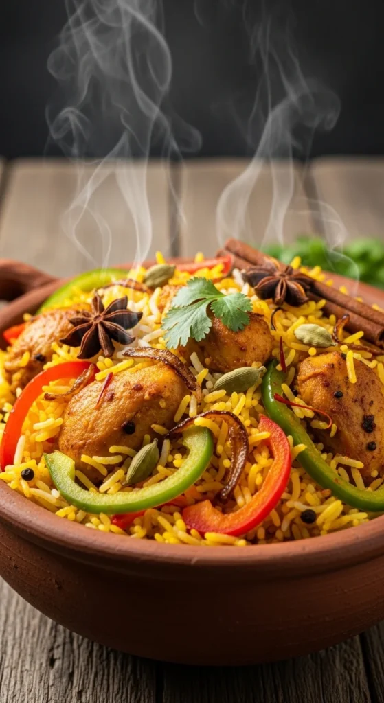 This rice dinner is bold, hearty, and perfect for feeding a family from one pot. It’s packed with flavor, but you can keep the heat gentle for kids. Chicken makes it filling, and veggies blend right in. It’s also great for leftovers because the flavors keep developing. Minimal dishes, big reward.