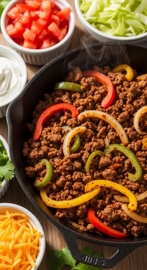 Tacos are easy because everyone can choose their own level of “stuff.” This skillet version keeps the meat juicy and flavorful without needing packets. It’s fast, it stretches well, and it works for tacos, bowls, or wraps. You can add beans to make it go further without changing the taste much. Weeknight win.