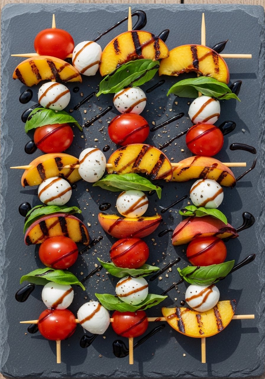 2. Tomato-Peach Caprese Skewers — No-Cook Finger Foods