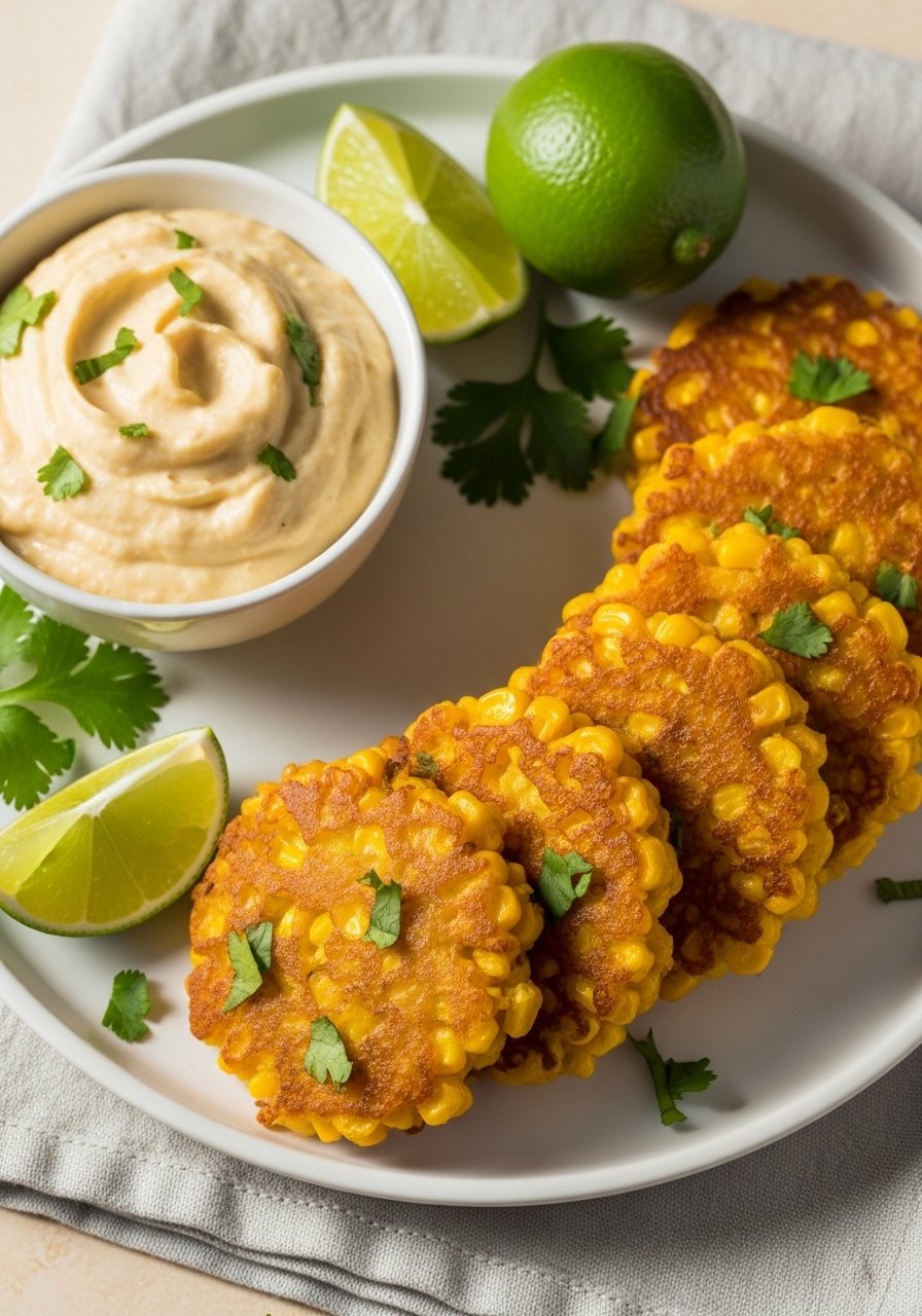 Stack fritters on a shallow bowl with lime wedges and sprinkle extra cotija. They pair nicely with cold beers or margaritas. Keep leftovers in an airtight container and reheat in an air fryer at 350°F for 4–6 minutes to reclaim the crisp.