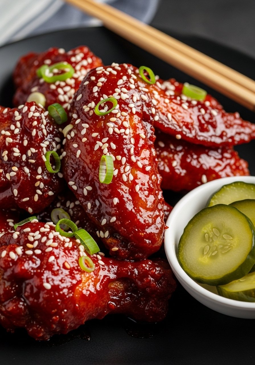 These wings are sticky, spicy, and crave-worthy. Gochujang gives a sweet-umami heat while a quick broil or air-fry finishes them with charred edges. Perfect for groups who like bold flavors.