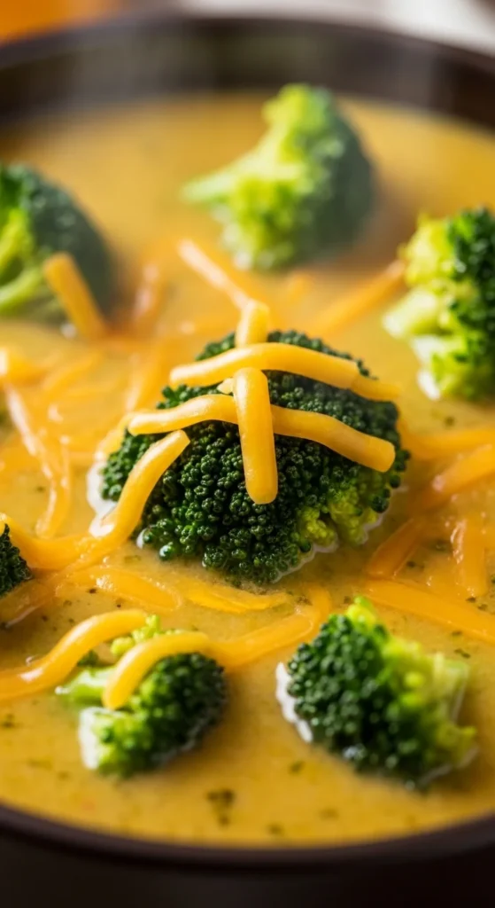 Cook onions in butter or oil, add chopped broccoli, then pour in broth and simmer until tender. Blend part of the soup for a creamy green base, then stir in shredded cheddar to melt.