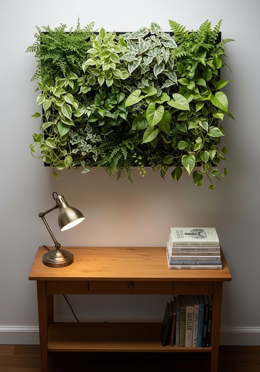 A living wall frame brings vertical greenery into compact spaces. Use hardy plants like pothos and philodendron that trail and create a lush effect. It’s a show-stopping piece above a console or bed that breathes life into plain walls.