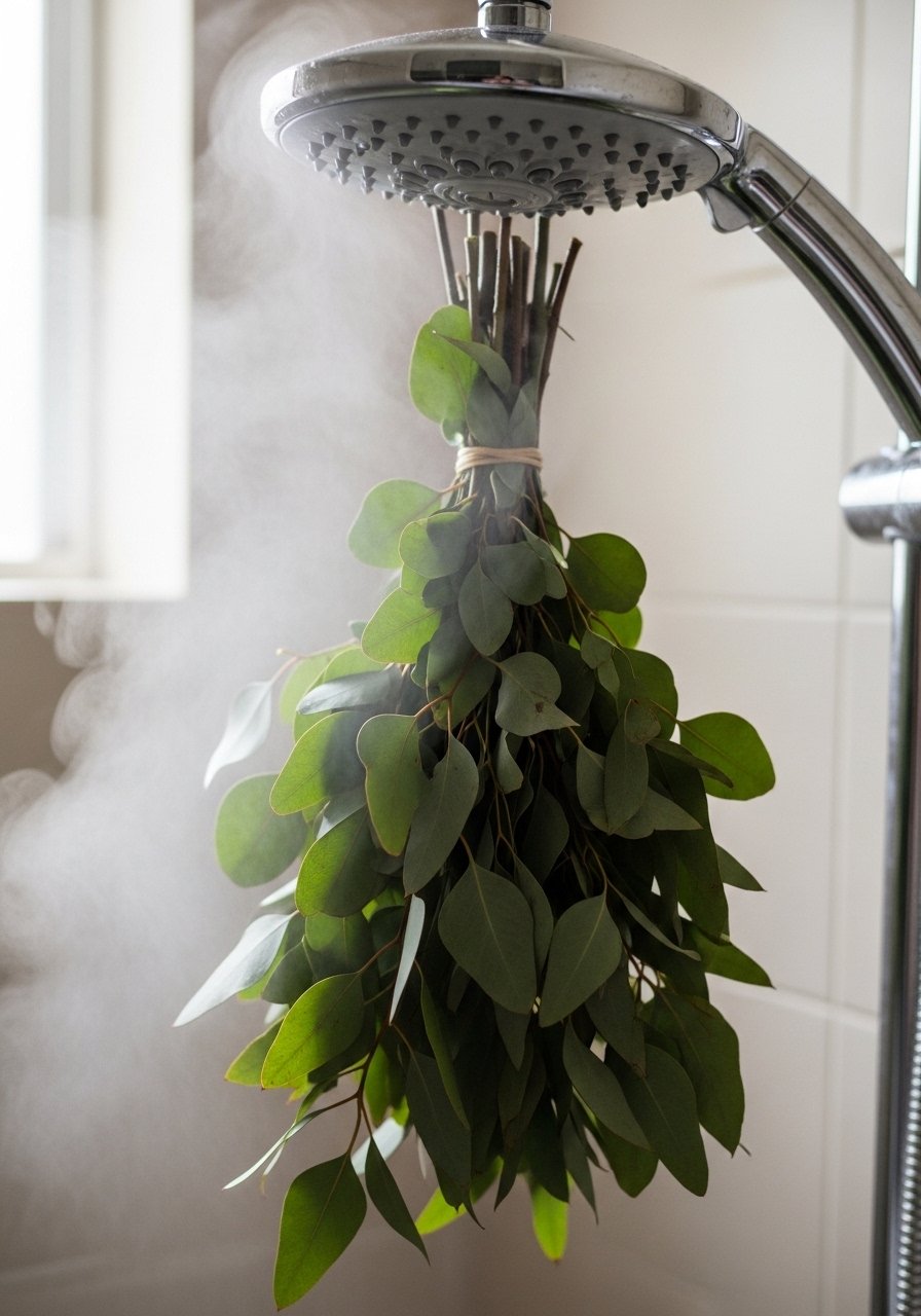 A eucalyptus shower bunch releases calming steam-scented oils and adds spa-like green home decor to your bathroom. It’s inexpensive, aromatic, and simple to hang—perfect for a quick upgrade to your self-care routine.