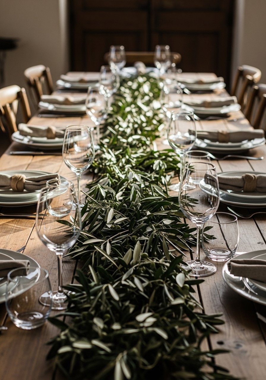 Style with neutral plates and a green centerpiece. For storage, fold and keep in a linen storage bag.