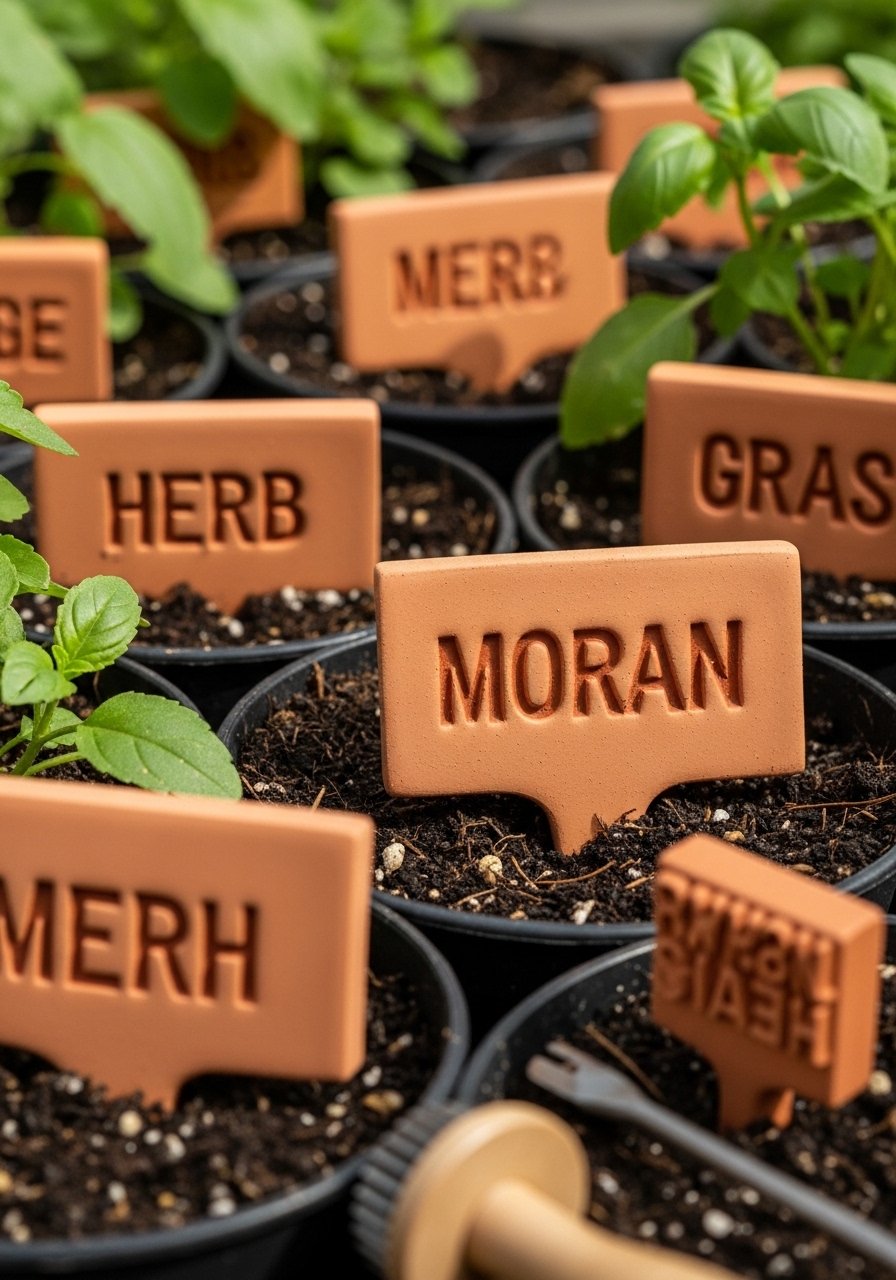 - Stamp herb names onto clay while it’s soft, pressing evenly.