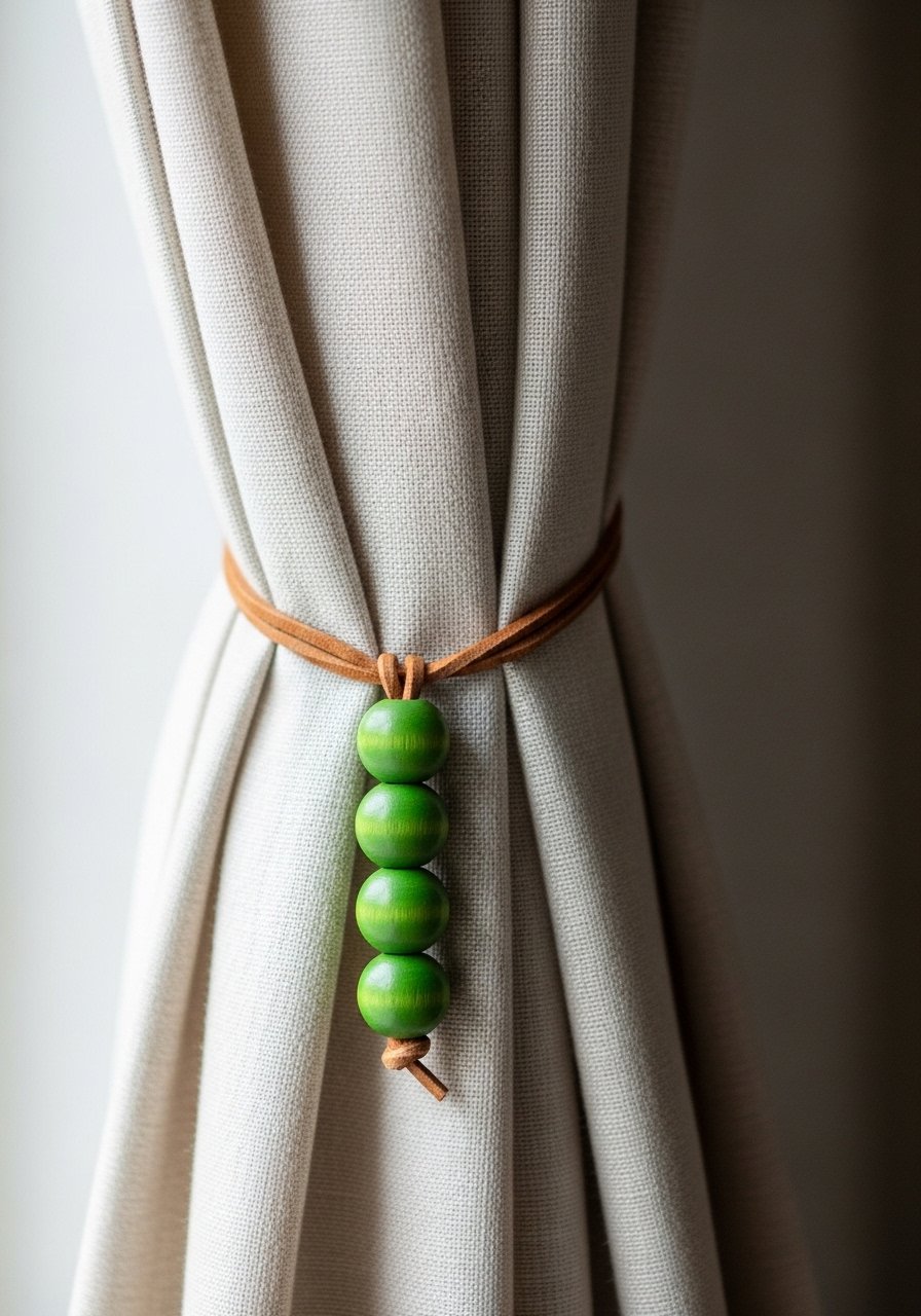 Beaded tiebacks add movement and a handcrafted accent to drapery. Choose beads in varying greens for a boho look that complements natural light.
