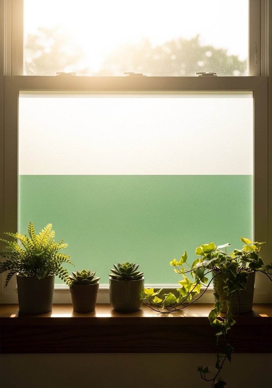 Window film offers privacy while bathing a room in green-hued light. It’s a renter-friendly option that’s simple to install and remove.