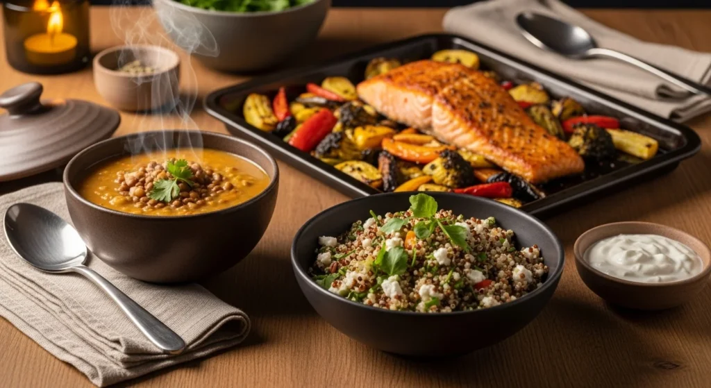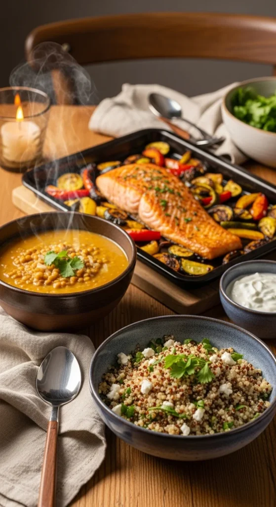 Healthy food can still feel cozy, filling, and seriously satisfying. This list is packed with quick-prep, nutrient-dense recipes that lean into comfort flavors—creamy sauces, warm bowls, hearty soups, and crispy toppings—without turning dinner into an all-day project. Most are ready in 30 minutes (or close), many are one-pan or one-pot, and all are easy enough for real weeknights.