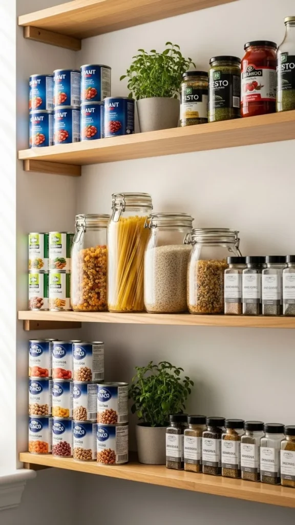 - Keep tortillas, pasta, canned beans, and frozen veggies stocked at all times.