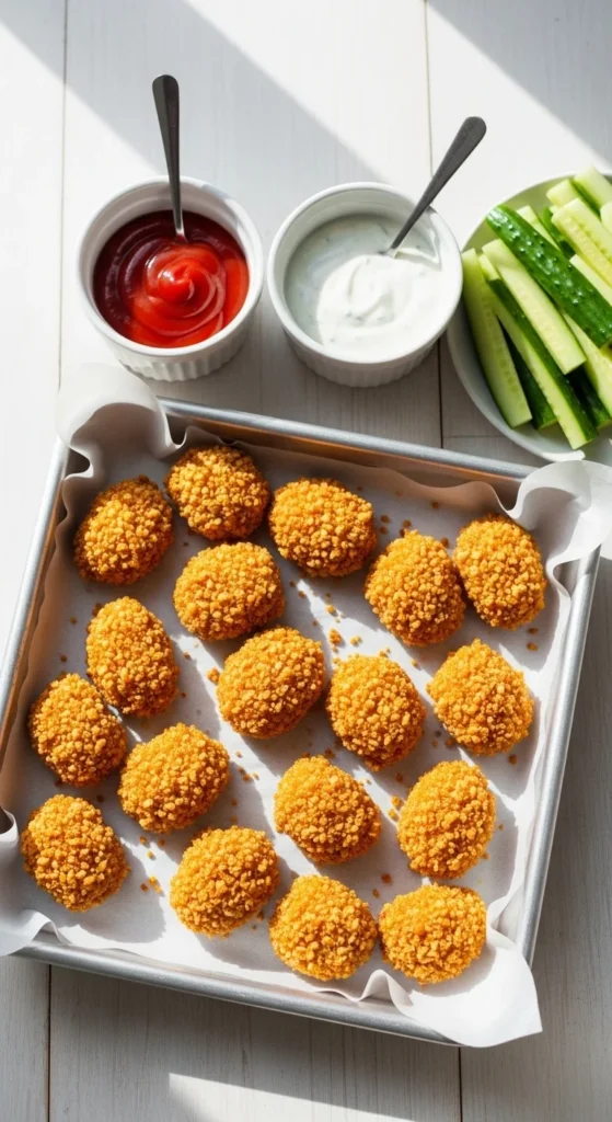 - Sauce: mild tomato sauce, yogurt dip, or honey-garlic glaze