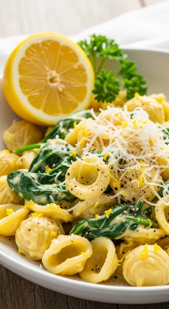 Stir vigorously off heat so it turns glossy and clings. - Ricotta-style + lemon