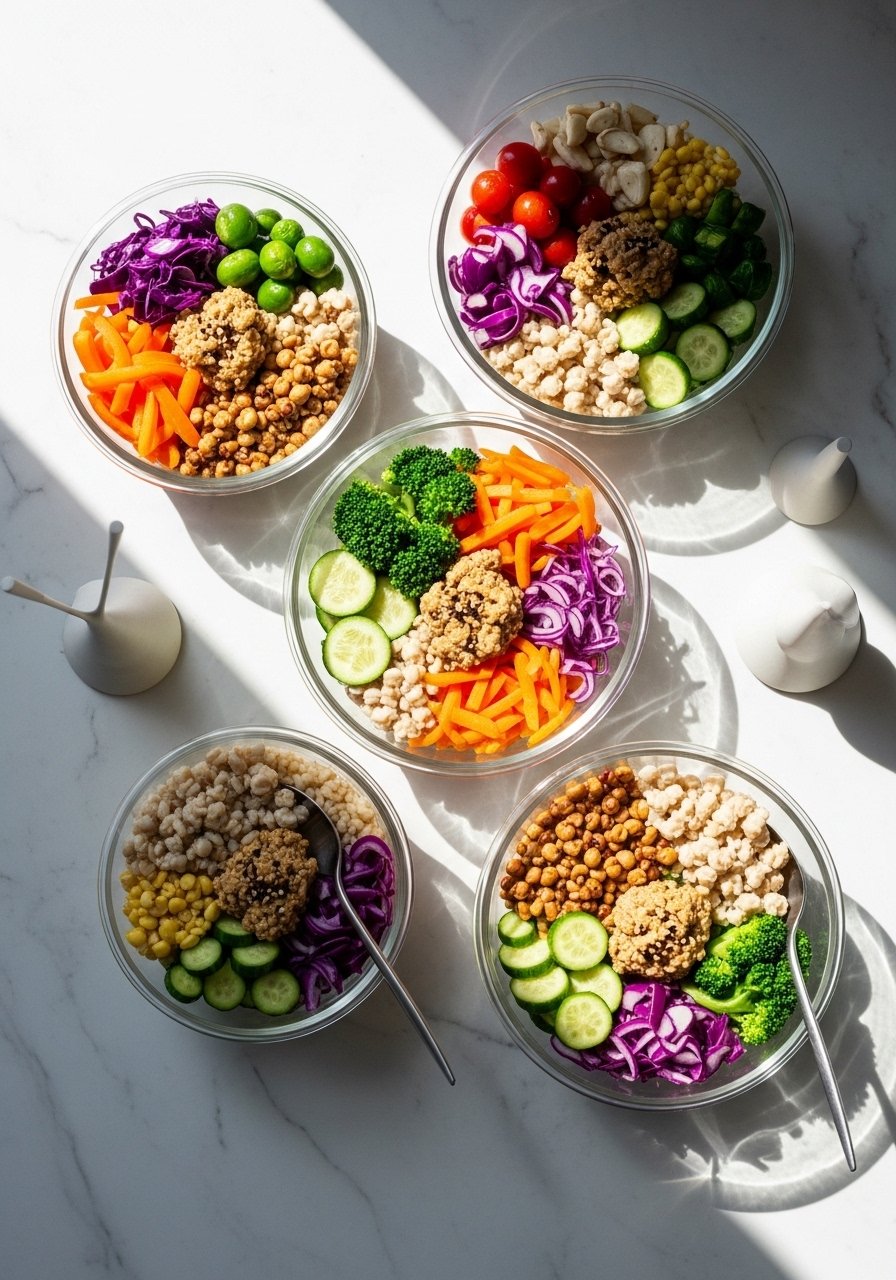 - Keep wet toppings (sauces, tzatziki, kimchi) in small glass jars so they don’t make bowls soggy.