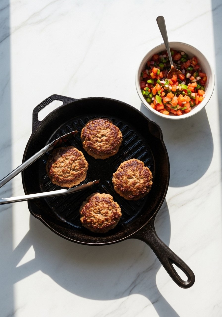 • Add a teaspoon of oil and sear 1–2 minutes per side until golden. Use an instant-read thermometer if unsure — proteins should reach safe temps.