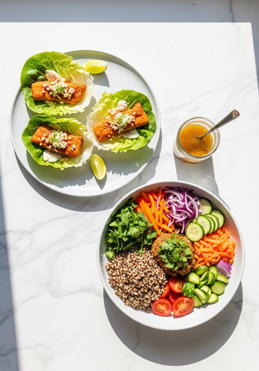 Serve sauces and dressings separately in small glass jars so textures stay crisp.