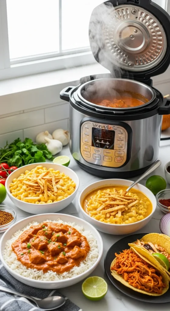 This is the Instant Pot classic people keep coming back to because it delivers tender chicken and a rich, silky sauce in a fraction of the usual time. The spices bloom quickly under pressure, and the tomato base turns smooth once stirred with cream. It’s cozy, filling, and very family-friendly. You can keep it mild or add heat at the table. It also reheats beautifully for meal prep. If you want one “wow” recipe to start with, this is it.