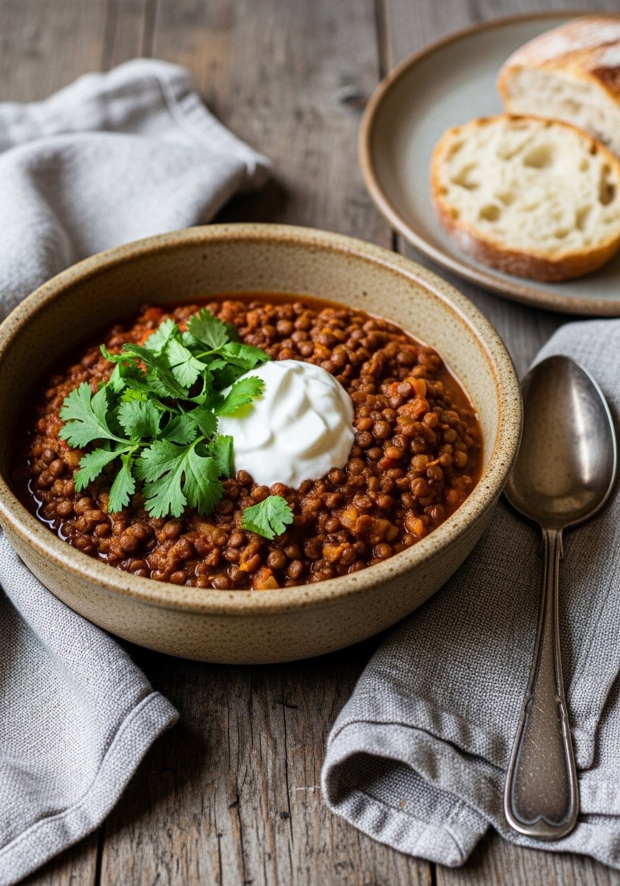 This lentil stew is a filling plant-based option loaded with fiber and savory spices. It has a thick, stew-like texture that feels comforting yet light. The mix of carrots, tomatoes, and lentils makes it satisfying for vegans and omnivores alike.