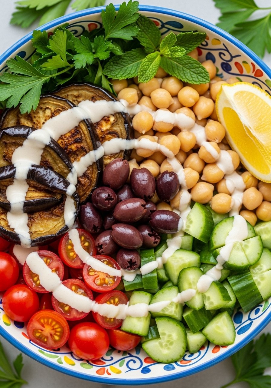 14. Mediterranean Chickpea Bowl with Tahini Dressing (Vegetarian, Quick)