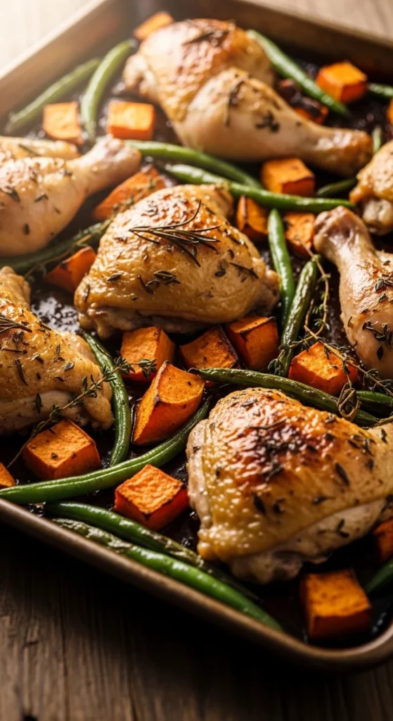 22. Whole30-Style Sheet Pan Chicken and Sweet Potatoes