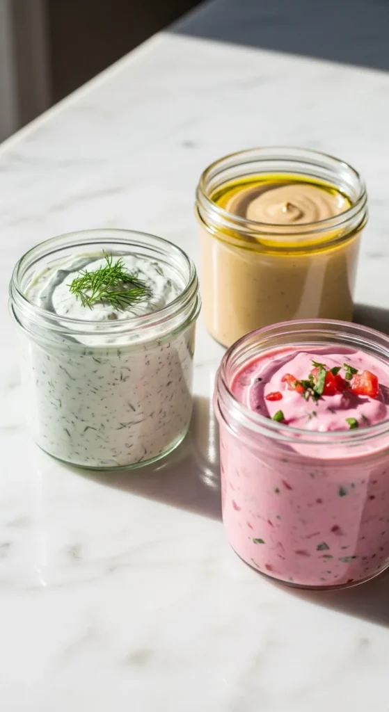 25. Mix-and-Match Sauce Trio (Yogurt, Tahini, Salsa Yogurt)