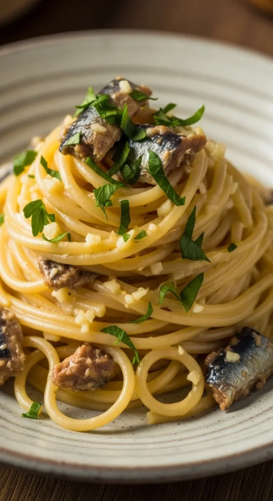 26. Creamy Garlic Butter Sardine Spaghetti (Pantry Hero)