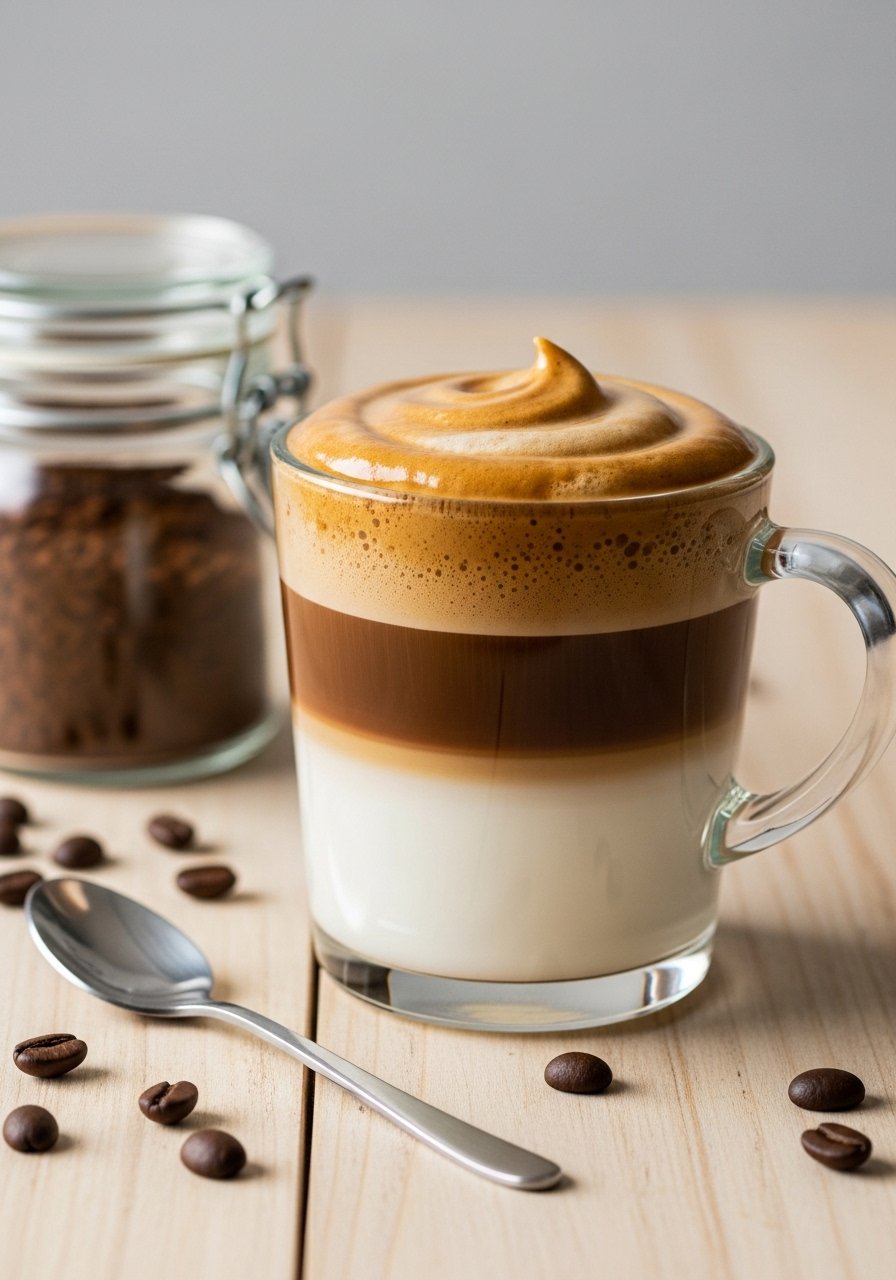 Serve in a clear glass to show off the layers. For a dessert-like twist, add a dollop of sweetened whipped cream and an extra dusting of cocoa. Store leftover whipped coffee in the fridge for a day but re-whip briefly before serving. Use an insulated tumbler for on-the-go iced versions.