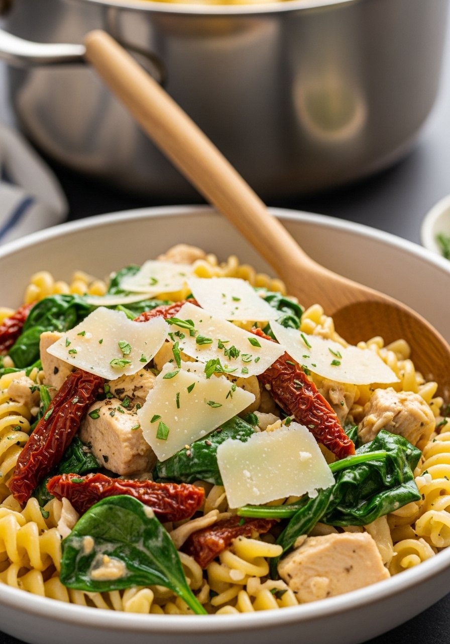 8. One-Pot Creamy Tuscan Chicken Pasta (Comfort Food)