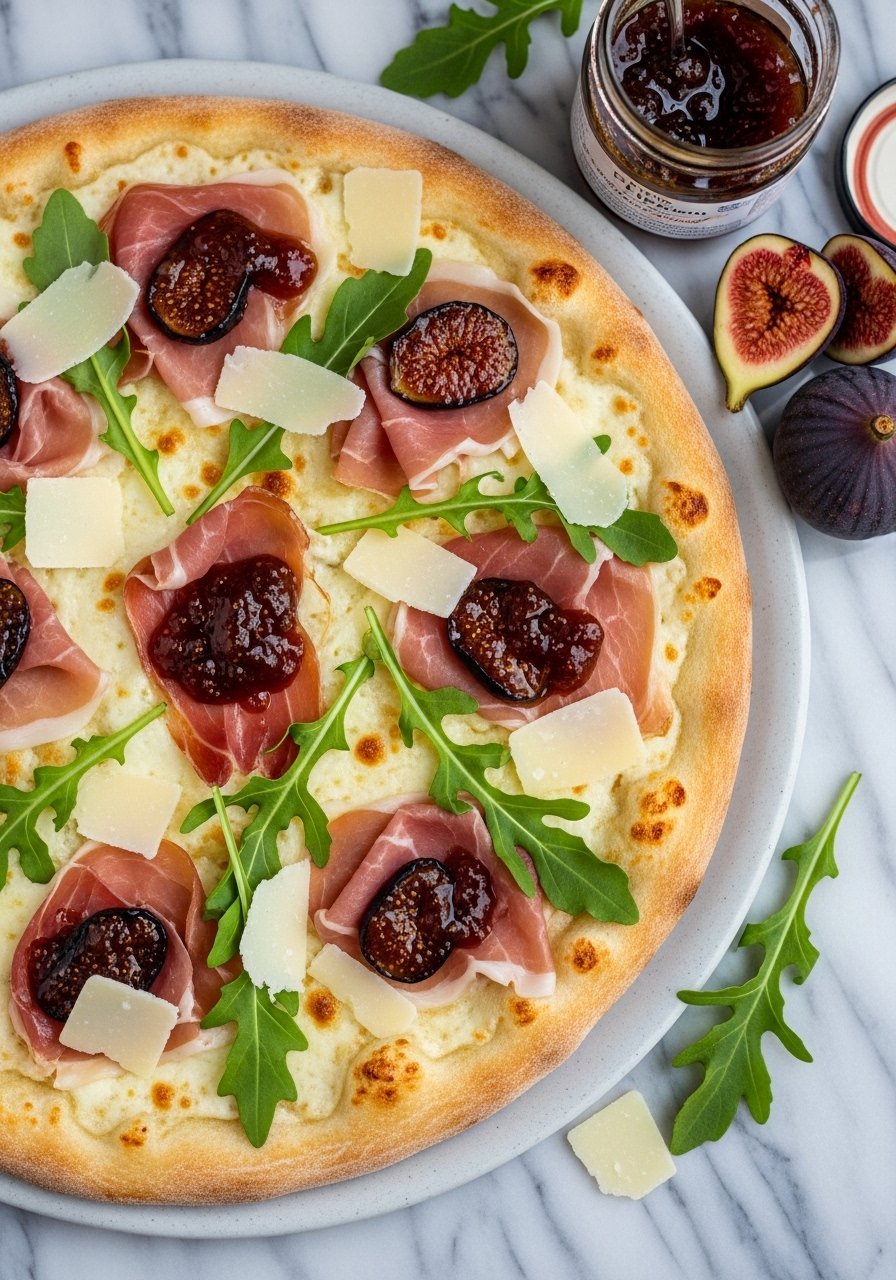 This elegant white pizza balances salty prosciutto, sweet fig, and peppery arugula on a crisp thin crust. The ricotta base keeps it creamy without tomato, and a quick oven blast gives the crust a satisfying snap. Great for date night, brunch, or a special dinner.