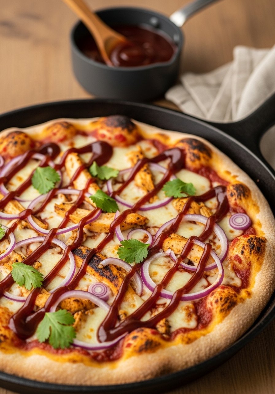 This BBQ chicken pizza uses a stovetop finish for caramelized sauce and a quick oven bake to melt cheese. It’s smoky, sweet, and perfect for weeknight dinners or game-day sharing. The homemade BBQ sauce concentrates flavor, so a little goes a long way.