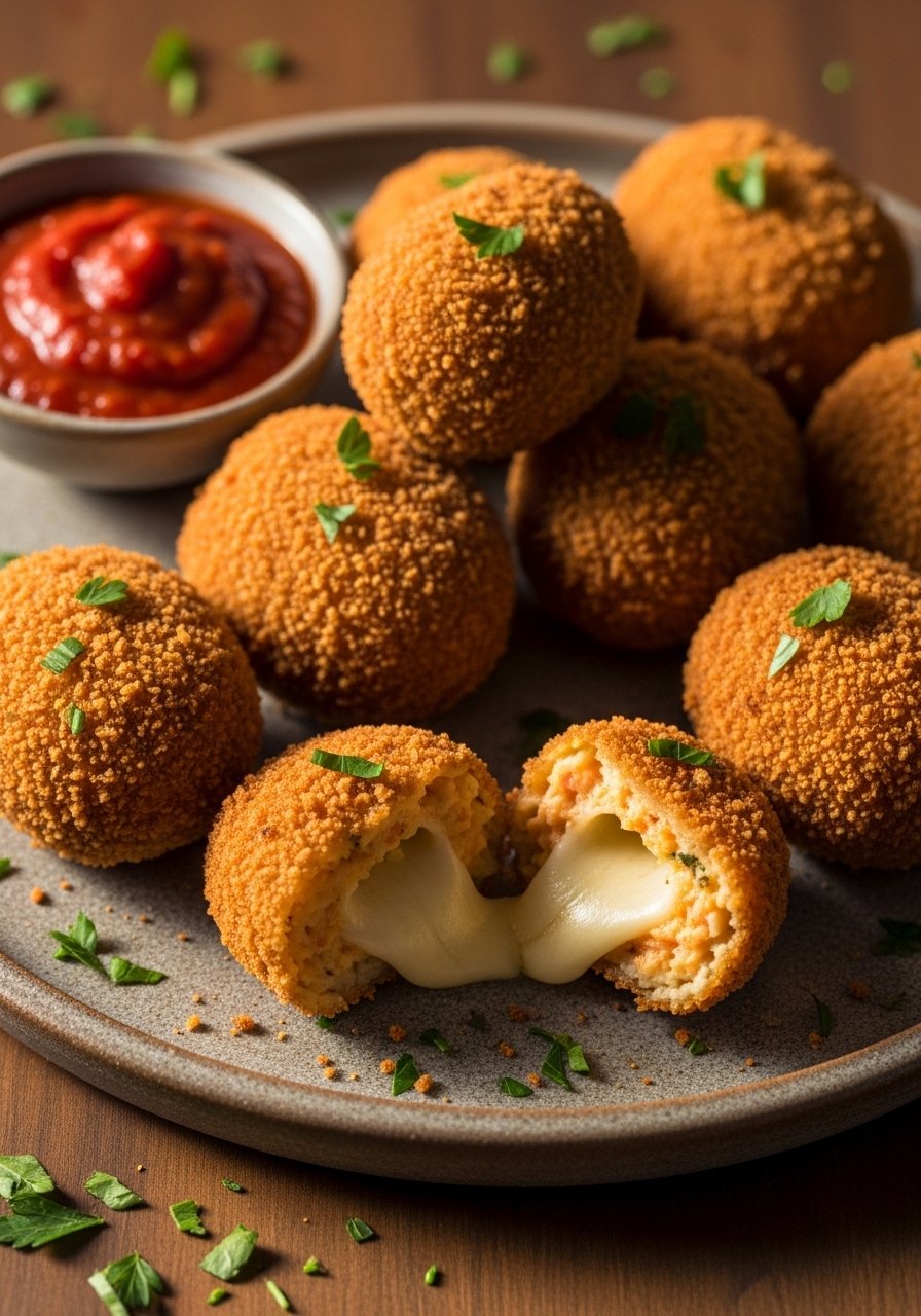 Serve with marinara, herbed yogurt, or a spicy mayo. Present on a platter with lemon wedges and fresh parsley. Keep in airtight food containers up to 2 days; reheat in a 375°F oven for 8–10 minutes to keep them crunchy. These make great party appetizers or cozy snacks.