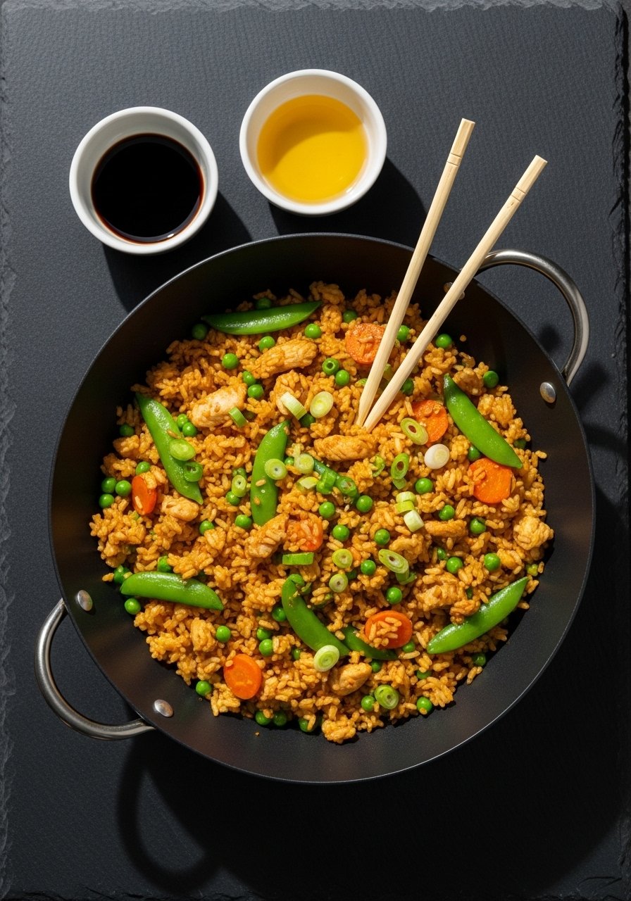 I use a hot wok or large skillet so the rice gets crisp edges. A set of sturdy silicone spatulas helps stir without scratching your pan.